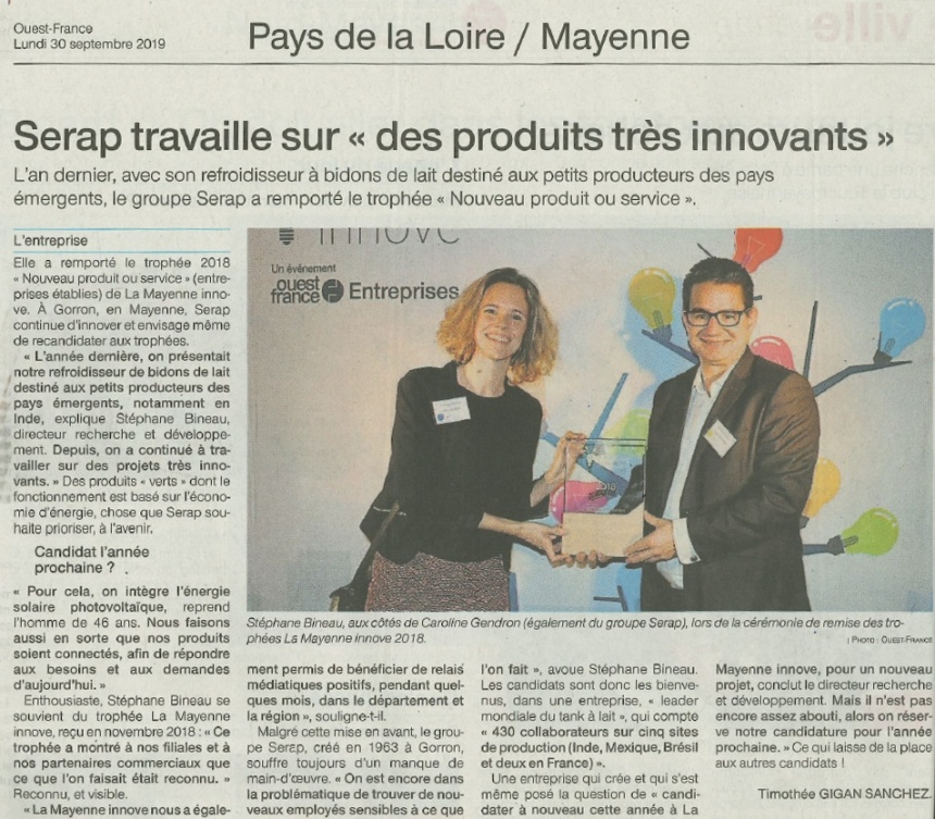 LE GROUPE SERAP LAURÉAT AUX TROPHÉES LA MAYENNE INNOVE