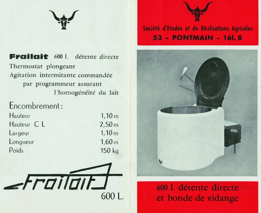 SERA (Société d’Etudes et de Recherche pour l’Agriculture) voit le jour en juin 1963 pour la production et la vente des refroidisseurs de lait baptisés Frailait. En 1964, elle deviendra SERAP (Société d’Etudes et de Réalisations Agricoles de Pontmain).